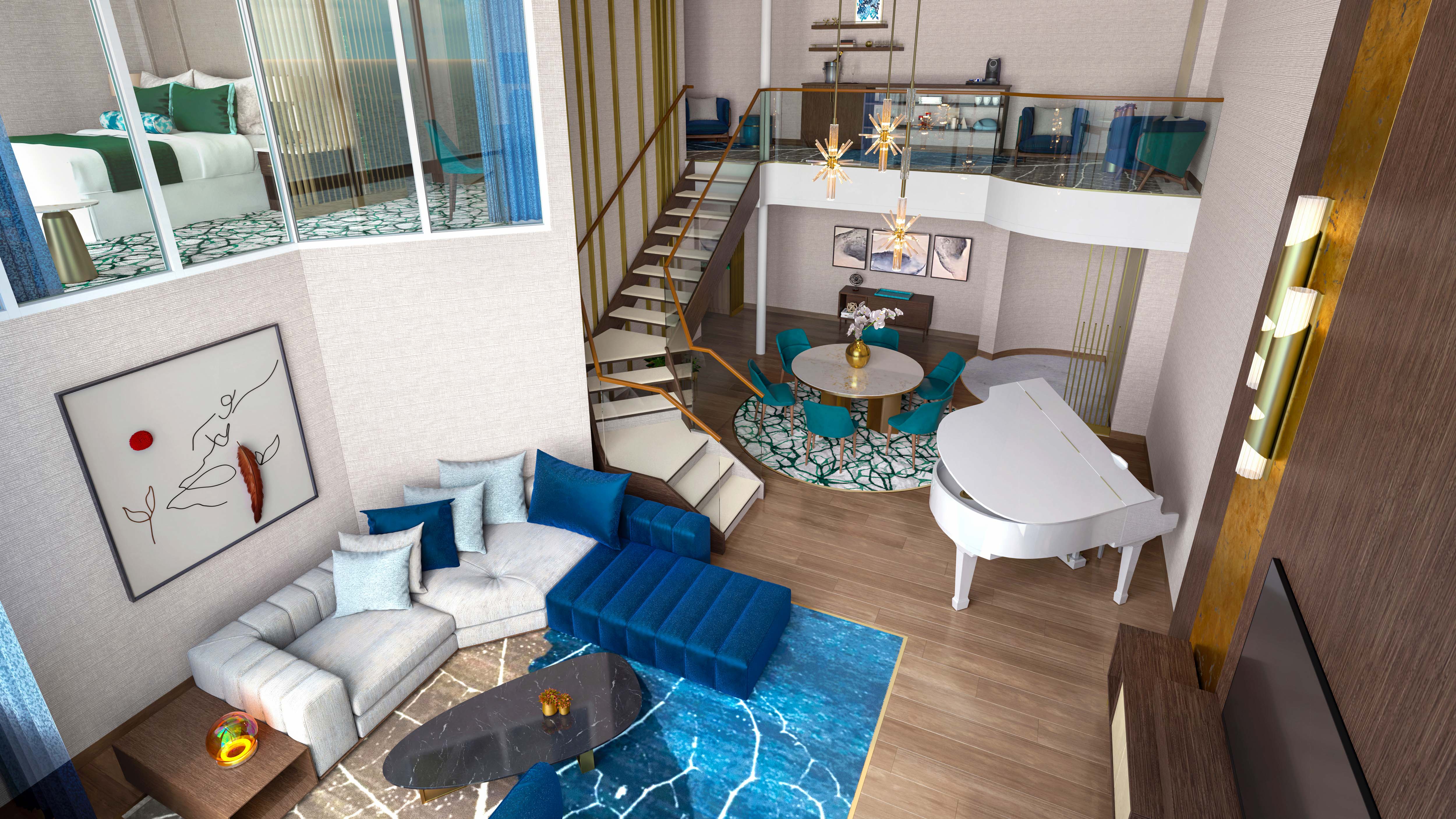 Introducing The Ultimate Family Treehouse, the suite that takes your vacation way past imagination — a dream come true for kids and kids at heart. Experience a three-deck treehouse with plenty to explore — from the rooftop terrace with a private whirlpool and prime ocean views to the expansive multi-room layout. Both main bedrooms even have their own bathroom and balcony, so everyone has their own space. And between it all, discover a teen space two decks high — with over-the-top features like a dedicated game room, and a spiral staircase that leads to their own hideout. Climb up to a new level of vacation, only on Hero of the Seas.