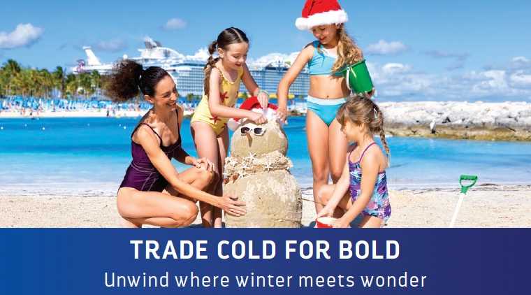 Turn up the holiday heat with weekend getaways on Wonder of the Seas® and Utopia of the Seas® or weeklong vacations on Icon of the Seas® and Star of the Seagm — all with stops at the award-winning Perfect Day at CocoCay. Because who said holiday traditions have to be traditional? Soak up all time family time while you conquer Daredevil's Peak® — the tallest waterslide in the Caribbean. Warm up the winter at seven white sand beaches, five sparkling pools, and the VIP cabanas at the luxe Coco Beach Club® or adults-only Hideaway Beachs™. Plus, satisfy your holiday hunger at nine complimentary spots to grab a bite and twenty bars. Turn your holidays into lifelong memories at the Royal Caribbean® destination voted Best Private Island by Travel Weeklyreaders for five years running.