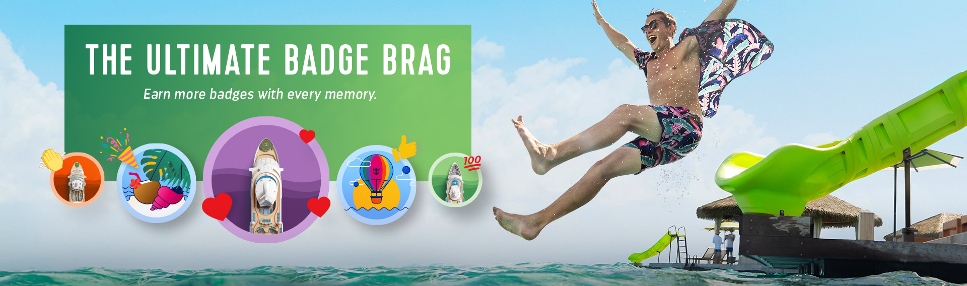 There's no memento like a vacation memento — and now your clients can take theirs with them everywhere they go. Introducing Royal Caribbean® virtual badges — an all-new souvenir to show off the best vacay memories. Your clients can collect badges for every ship they sail on, from weekend gamechanger Utopia of the Seas to family vacation all-star, Icon of the Seas. Plus, there's a badge for every hallmark destination they discover — like the wild Last Frontier, charming European coasts, Caribbean gems, transatlantic treks and more. They can view their badges in the Royal Caribbean app and show off their collection with their crew on social media and get them yearning while they're earning.
