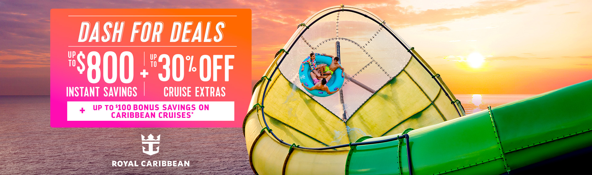 General Terms: Instant savings amount shown in USD and will be converted to currency used for cruise purchase applied as instant rebate to the cruise fare at checkout reflected as “Dollars Off” or “Savings”. All other charges, including taxes, fees, and port expenses, where not included in the price displayed are additional and apply to all guests. Changes to the booking may result in the removal of the offer. Individual reservations may be transferred into an existing group, assuming the required criteria are met; full deposit will be required at time of transfer. Failure to apply the required full deposit amount may result in the cancellation of the booking. Single occupancy guests paying 200% cruise fare are eligible for full offer; single occupancy guests paying less than 200% cruise fare are eligible for a prorated amount of the offer. Offers available to residents of United States, Canada, Puerto Rico, and select countries in the Caribbean. Prices and offers are subject to availability and change without notice, capacity controlled and may be withdrawn at any time. Refer to www.RoyalCaribbean.com for complete terms and conditions. Royal Caribbean International reserves the right to correct any errors, inaccuracies, or omissions and to change or update fares, fees, and surcharges at any time without prior notice. ©2025 Royal Caribbean Cruises Ltd. Ships’ registry: Bahamas.