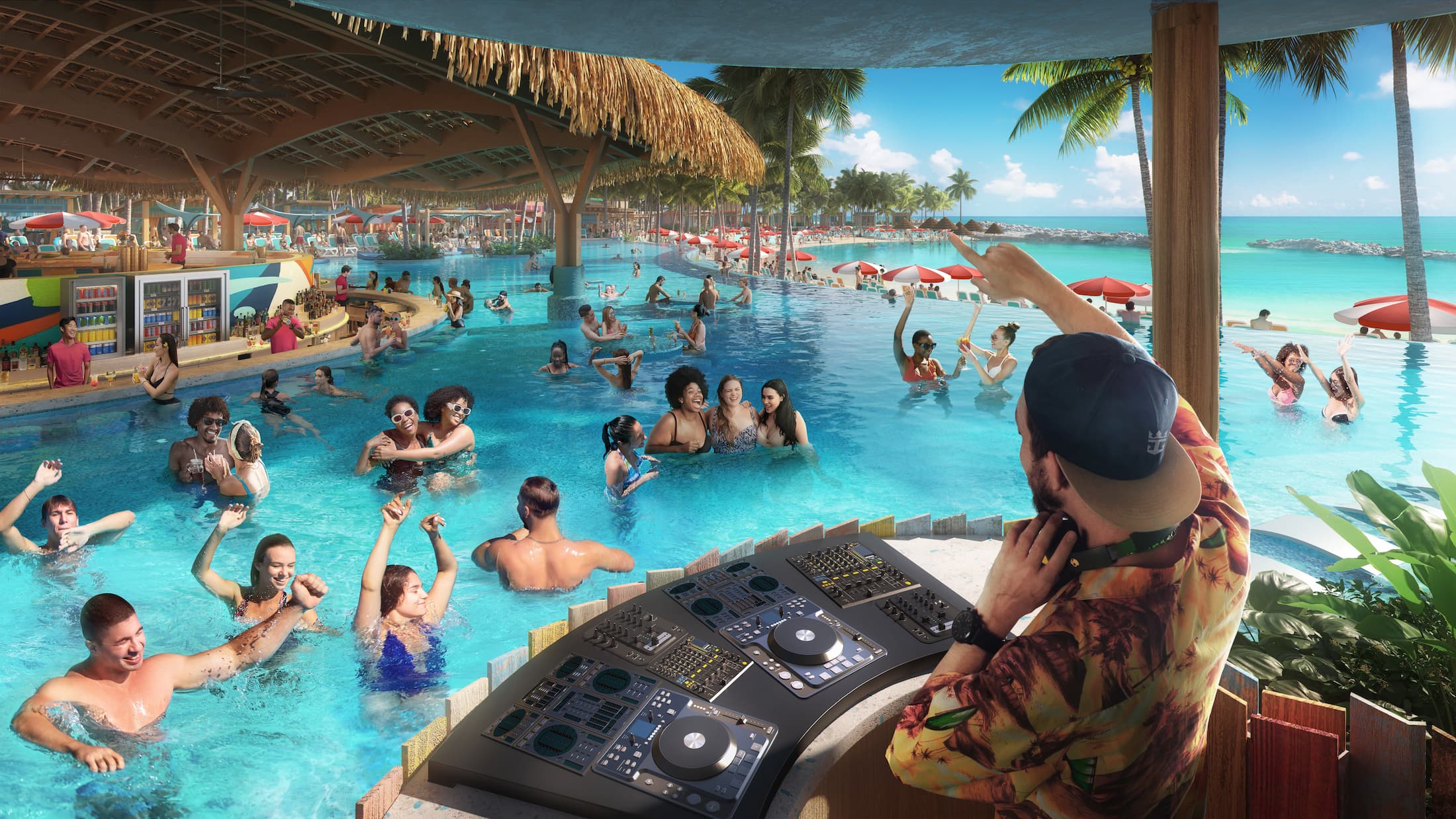 Your clients are about to discover the ultimate beachfront party in paradise just for adults — Hideaway Beach only on Royal Caribbean. They'll swim right up to the popping Hideaway Bar, fueled by non-stop DJ-spun beats. Or soak up the rhythms at four more watering holes serving expertly crafted libations. Keep the energy fed with tasty pizzas from Slice of Paradise and elevated bites from Hideaway Hut. Plus, amp up the chill in their exclusive pool at one of exclusive cabanas at The Hideout.